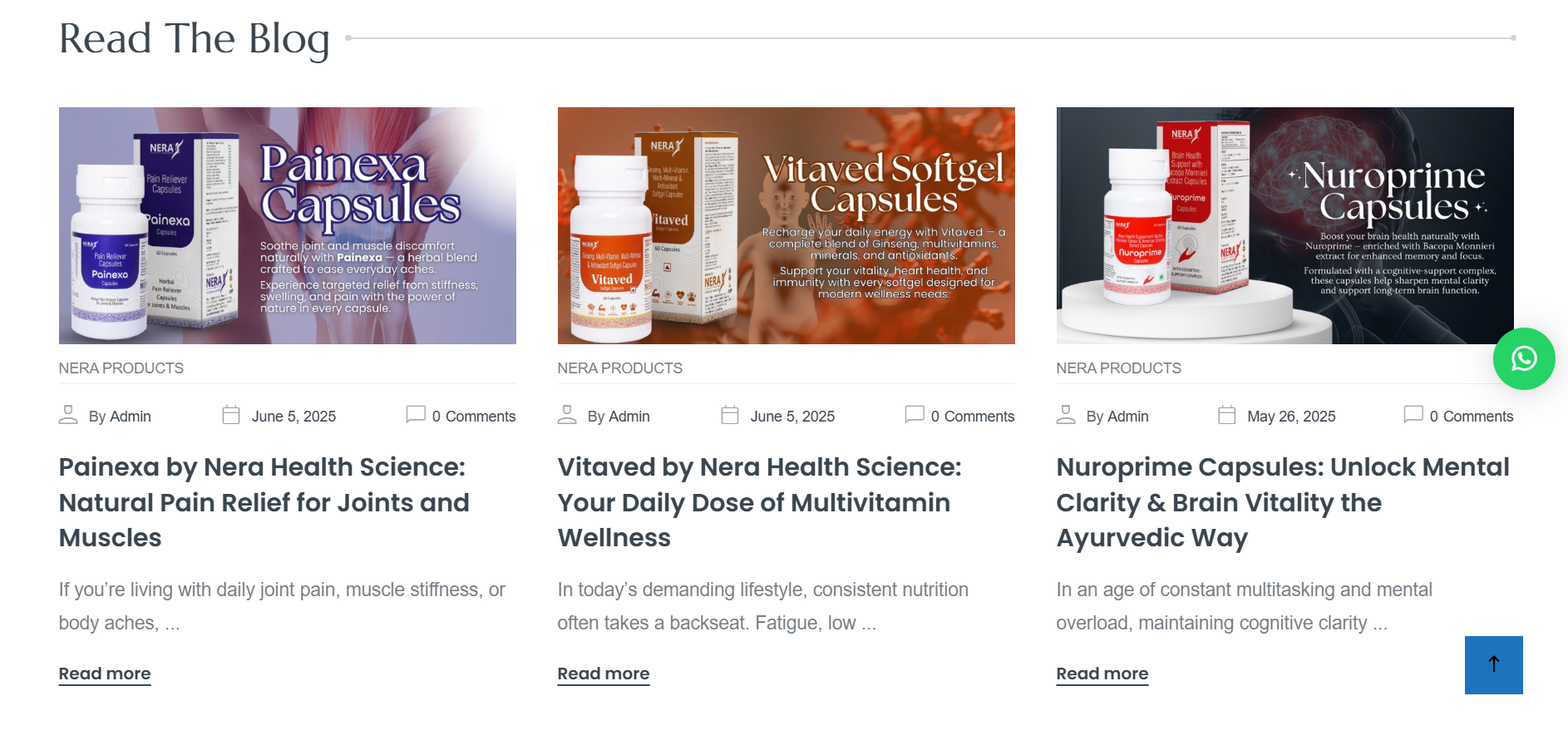 WordPress’s built-in blogging capability lets Nera publish Ayurvedic health guides, product benefit articles, and wellness tips — driving consistent organic traffic from health-conscious Indians searching Google every day.
